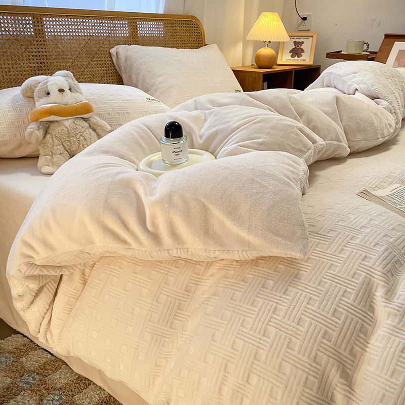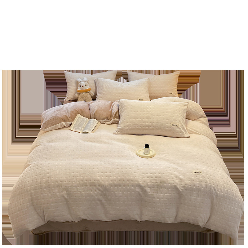 Class A New Plaid Milk Velvet Four-piece Set Winter Warm Single Double Quilt Cover Bed Sheet Three-piece Set Double