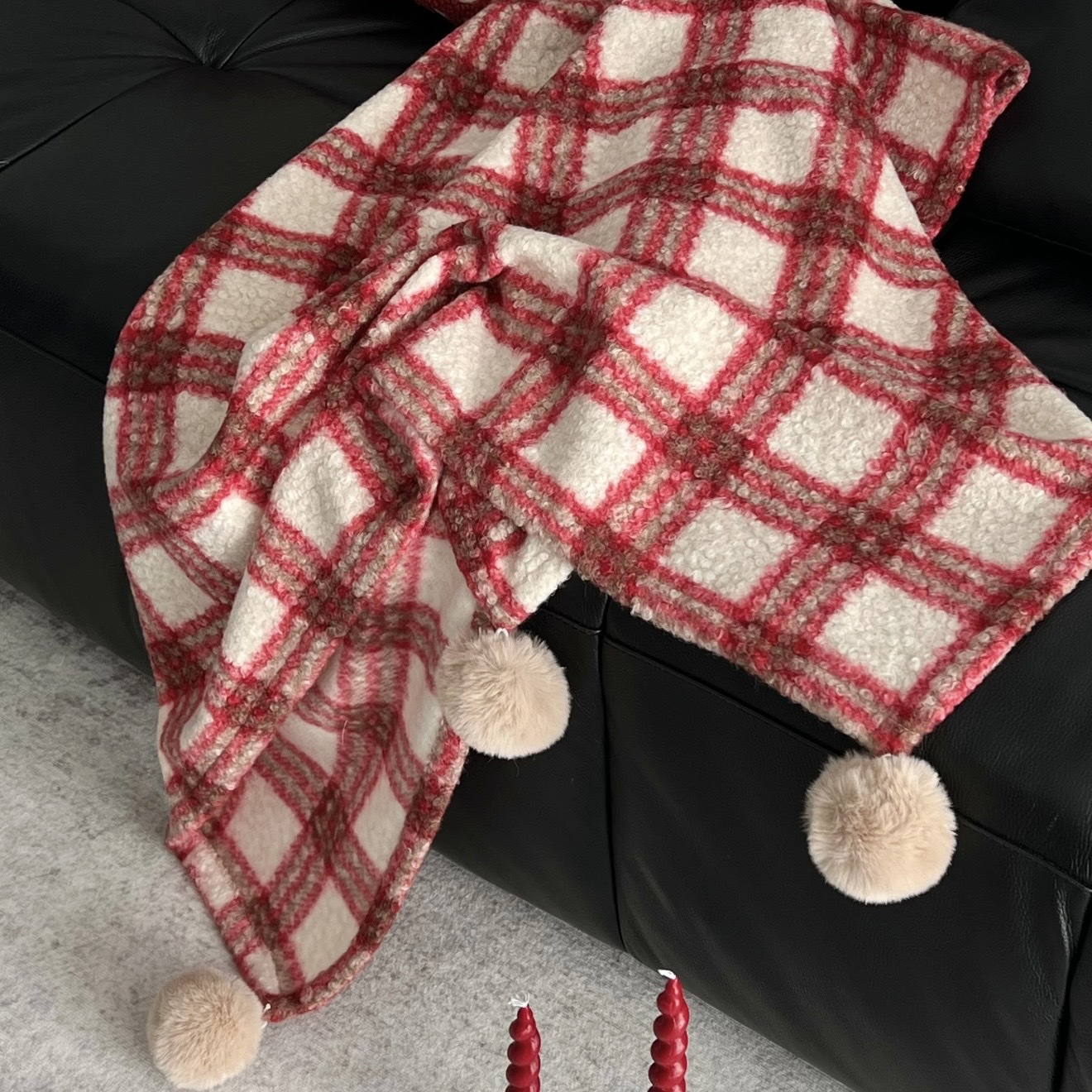 New Year Plaid Wool Blanket, Red Double-Sided Throw Blanket, British Retro Blanket, Soft Autumn and Winter Thickened Sofa Blanket