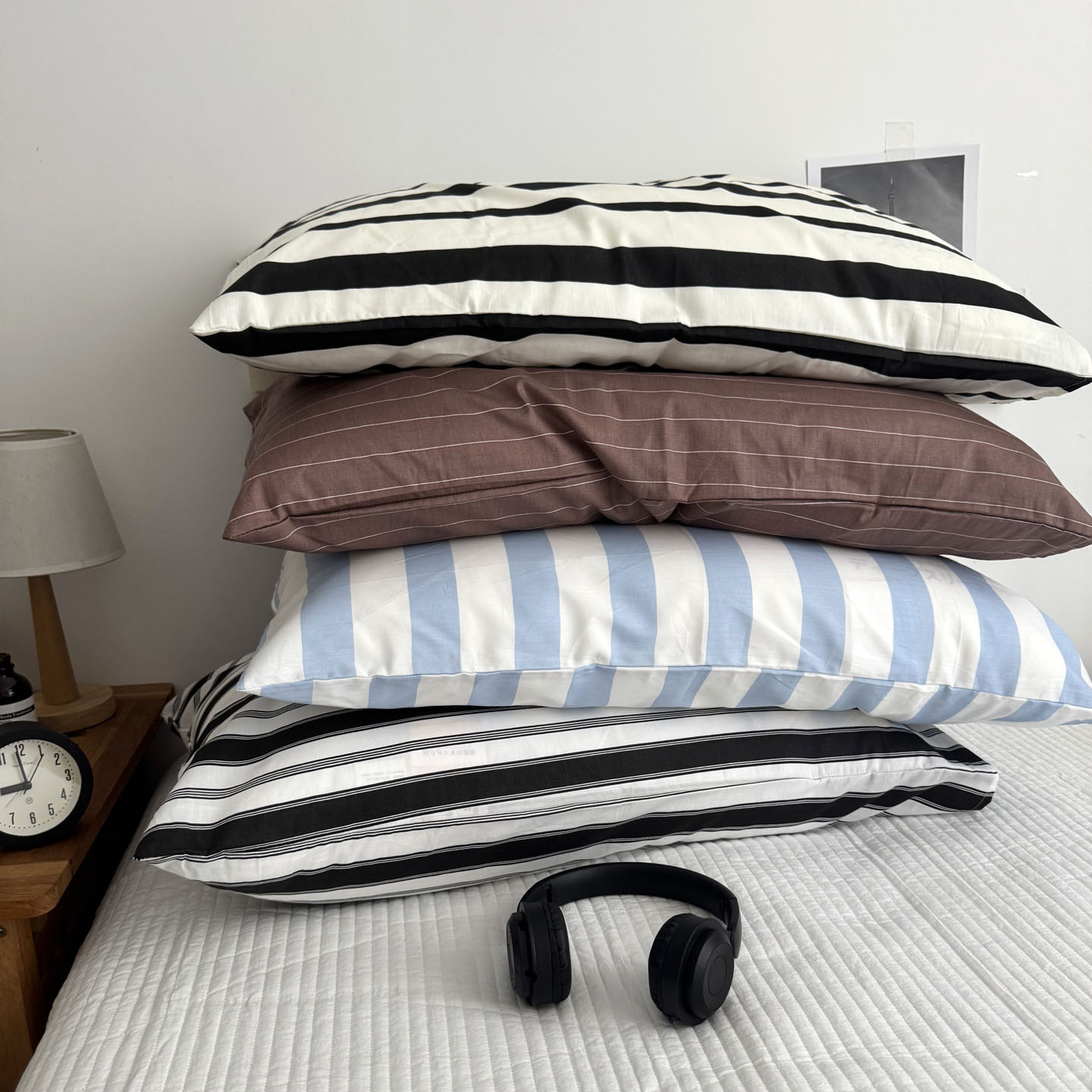 - PatternWhite thin black strips, Wave point off-white, Pink stripes, Black and white stripes, Wide strips of beige, Wide beige, Wide strip light blue, Wide strip dark gray, Wide dark blue, Blue and white wide strips, Blue and orange wide strips, Blue thin white strips, Blue thin black strips, Dream forest, Rice black strips, Mocha wide strip, Mocha thin white strips, Mocha brown strips, Yamamoto kurotaka, Free, Black, Romantic purple, Pine leaf green, Starry sky blue, Bruce blueDimensionsCotton pillowcase 48*74cm one pack