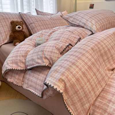 Class a All-Cotton Thickened Brushed Four-Piece Set with Scalloped Edges, Pure Cotton Duvet Cover, Fitted Sheet, Bed Sheet, Autumn and Winter Three-Piece Set~